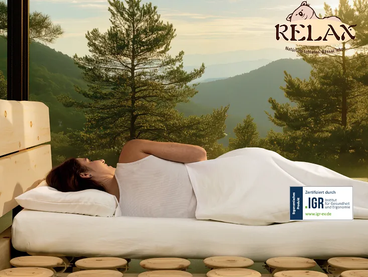 Mit einem Relax 2000 Bettsystem schlafen Sie wie auf einer Wolke. Das Herzstück dieses einzigartigen Systems sind die Spezialfederkörper. Sie ermöglichen eine Einsinktiefe von bis zu 70 Millimetern und gewährleisten so eine perfekte Anpassung an Ihren Körper sowie die Entlastung Ihrer Wirbelsäule während des Schlafs. Dank der Spezialfederkörper lässt sich Ihr Relax-2000-Schlafsystem mit wenigen Handgriffen an Ihre persönlichen Bedürfnisse und individuellen Schlafgewohnheiten anpassen. Selbst eine Anpassung der Schulter- und Beckenentlastung ist schnell vorgenommen. Die gänzlich unbehandelten Massivholzteller aus Zirben- oder Buchenholz, die aus nachhaltiger Forstwirtschaft stammen, bringen ein weiteres Stück Natur in Ihr Schlafzimmer.