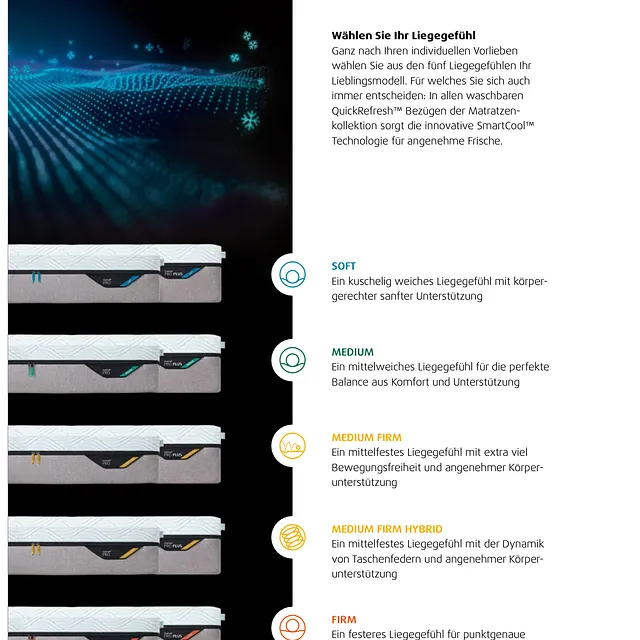 Jede TEMPUR®-Matratze ist so konstruiert, dass sie sowohl Komfort als auch Stabilität bietet. Die obere Schicht aus TEMPUR® passt sich langsam und präzise der individuellen Körperkontur an, während die darunterliegende Schicht für eine dauerhafte Formstabilität und einen sicheren Halt sorgt. Das Design wird durch atmungsaktive, leicht abnehmbare und waschbare Bezüge abgerundet, die für ein hygienisches Schlafklima sorgen.